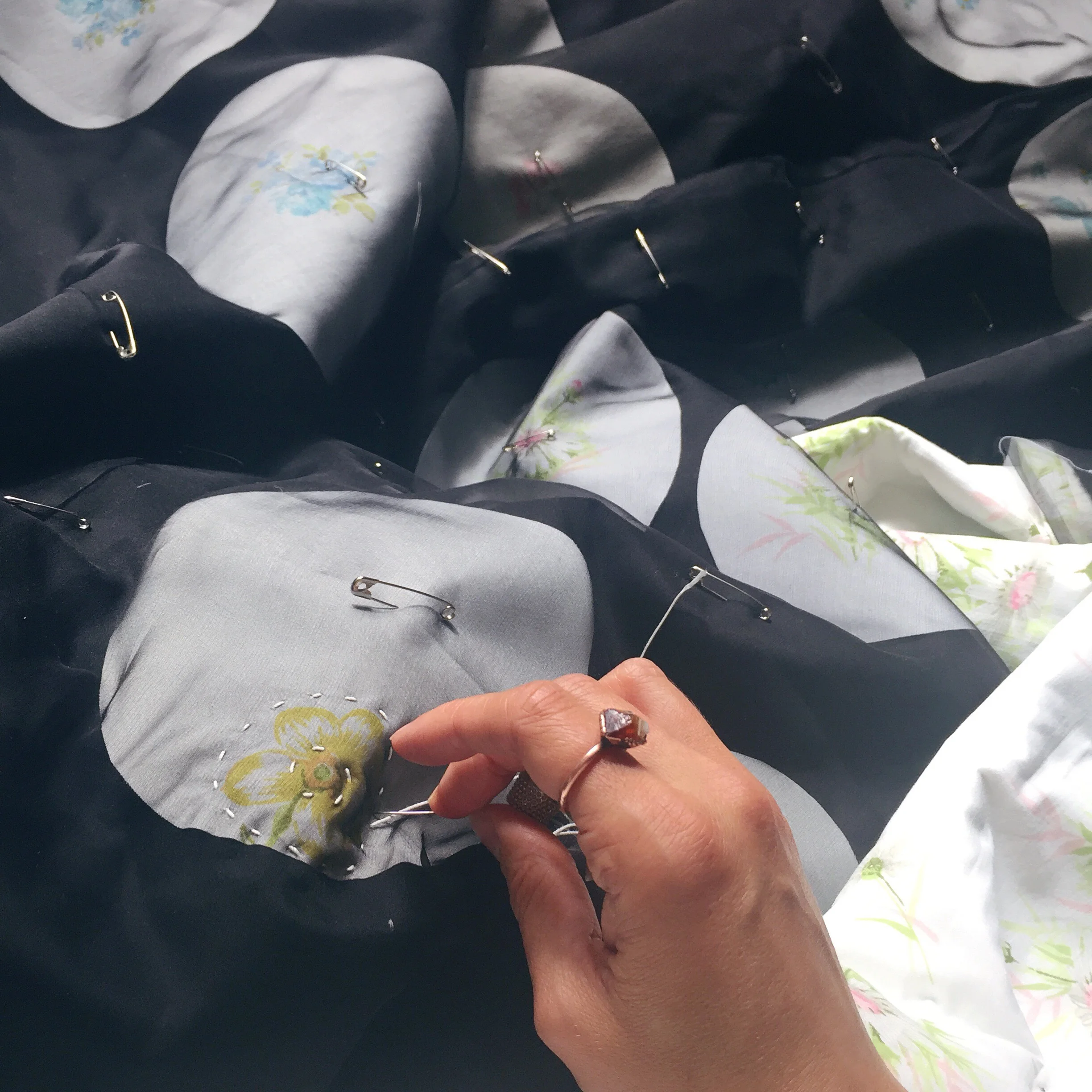 I create art to document the conflicting experiences of mothering. I work with found textiles of daily life. The domestic cloth—bed sheets, a child’s dress, tablecloths —combines and contrasts with found objects, exploring both physical weight and child-like lightheartedness. My wall hangings and soft sculptures are layered in meaning both conceptually and materially as with the layers of a quilt. The maternal body, personal space, and the parent-child emotional connection are explored through collage, digital printing, and fabric manipulation. Transformation of materials shows the development of identity through the lens of giving birth and care-taking. It is my intention that each carefully stitched creative work proves to not only be an exploration and processing of my own experience, but also a road map for others, making visible and validating the complexities of new motherhood.